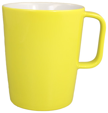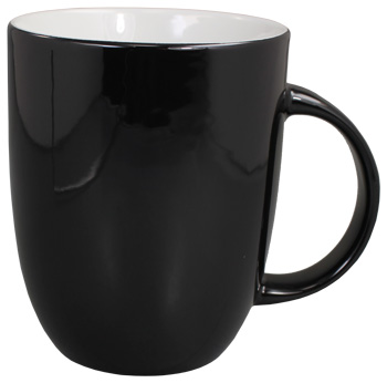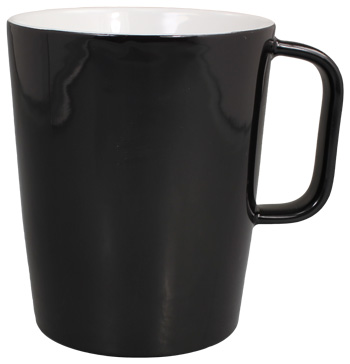 Die schwarze Keramiktasse über einen Umfang von knapp 200mm mit einem Logo, einer Grafik oder einem Foto bedruckt werden, genau so wie alle anderen Keramiktassen.